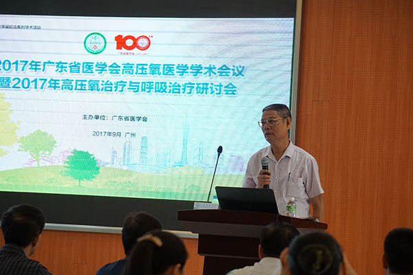 9月16日至17日,2017年广东省医学会高压氧医学学术会议暨2017年高压氧治疗与呼吸治疗研讨会在中山大学新华学院广州校区召开。广东省高压氧治疗的泰斗及鼻祖刘子藩教授,广东省医学会高压氧医学第四届主任委员、广东省高压氧医学质控中心主任翁其彪教授,广东省医学会高压氧医学分会第五届主任委员主任虞容豪,广东省高压氧医学分会主委龙颖,副主委谭杰文、王宏隽、李雯和全体常委以及深圳市人民医院、南方医科大学南方医院、南方医科大学珠江医院、广州医科大学附属第二医院、广东医科大学附院等广东省30多家医院的医护人员出席了研讨会。