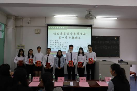 下面是本次大会的第五项议程,由刘静丽老师和吴亚丽老师颁发3044永利学生会第一届干部聘书,对他们过去一年里的努力工作和辛勤付出给予了肯定,并表示感谢