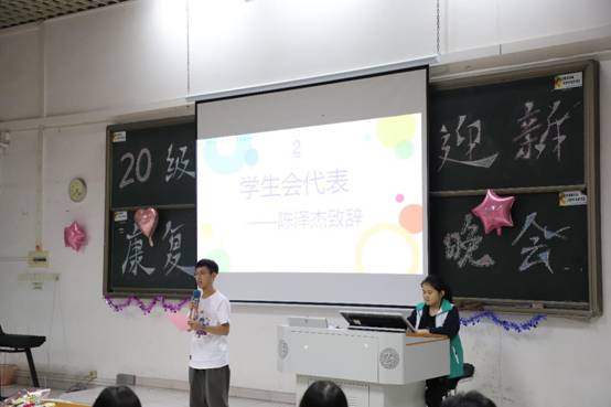 其次是学生代表陈泽杰发言,给予了20级新生鼓励和期望,希望新生们能逐渐走向成熟,互相关爱、共同学习、共同进步,共渡美好的大学生活。