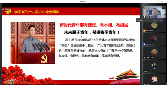 接着黄书记带领师生学习了《中共中央关于党的百年奋斗重大成就和历史经验的决议》的一个突出亮点、两大特点、一个重大政治论断和马克思主义中国化的三次飞跃等决议的几个关键词。他指出《决议》充分体现了中国共产党作为百年大党的历史清醒和历史自觉,深刻揭示了“过去我们为什么能够成功、未来我们怎样才能继续成功”,是一篇马克思主义的纲领性文献,是新时代中国共产党人牢记初心使命、坚持和发展中国特色社会主义的政治宣言,是以史为鉴、开创未来,实现中华民族伟大复兴的行动指南。