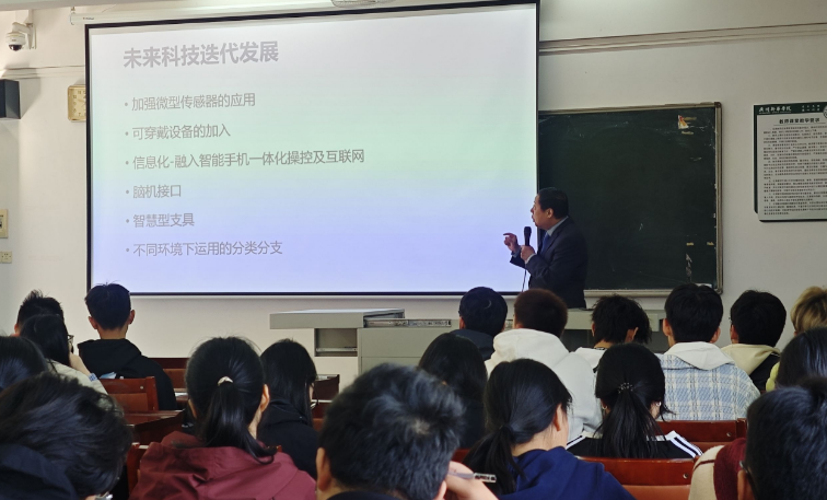 在本次思政第一课中,黄东锋以其深厚的专业造诣和独特的教学风格,将思政教育与专业内容深度融合。课程伊始,黄东锋便以“创新与责任”为切入点,深入探讨了康复新科技的重要意义。他指出,在当今科技飞速发展的时代背景下,从人工智能辅助康复治疗的精准化,到外骨骼机器人助力行动障碍患者重获新生,科技的突破不仅改变了传统的康复模式,更为无数患者带来了希望与曙光。他强调,作为未来的康复医学人才,学生们不仅要掌握扎实的专业知识,更要培养创新思维,敢于突破传统,为推动整个行业的发展贡献自己的智慧与力量。