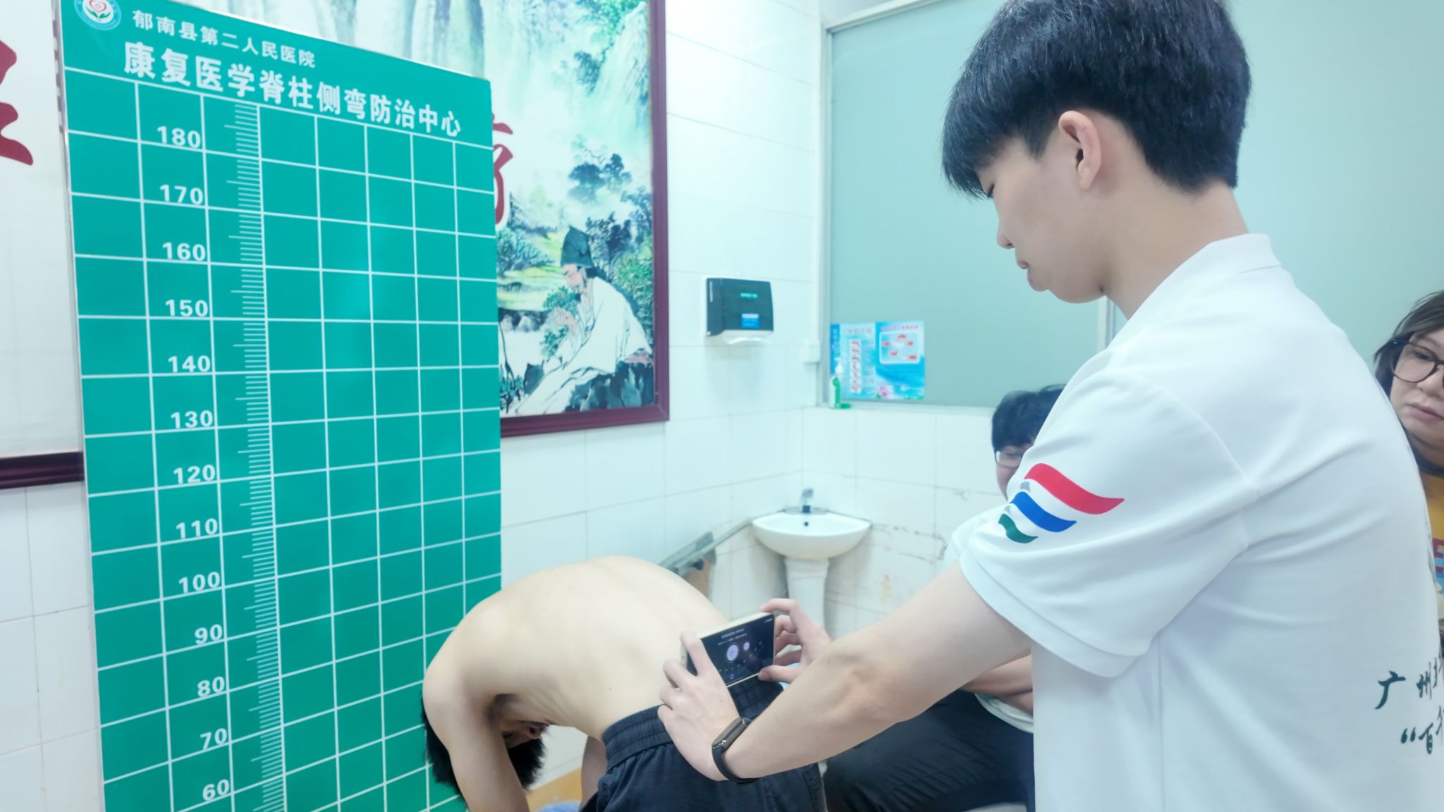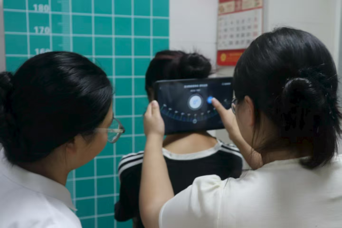 3044永利师生利用远程大数据分析技术对患者进行脊柱侧弯筛查。