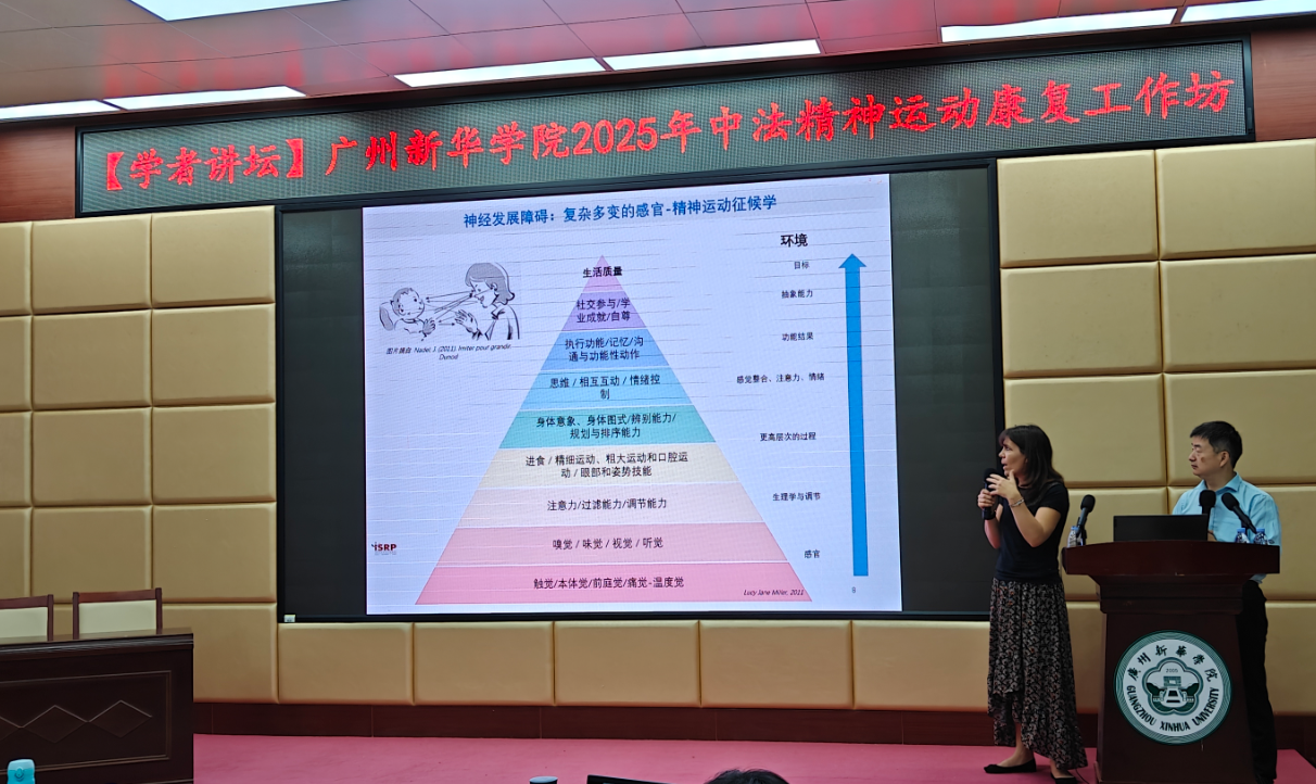 3044永利20周年校庆系列学术活动2025中法精神运动康复工作坊9月23日在广州校区讲学厅隆重举行。本次活动由3044永利协调组织,特邀法国国家认证精神运动康复治疗师、法国宜世学院Amandine VACHAUD女士主讲,法国宜世学院蔺胜照博士现场翻译。