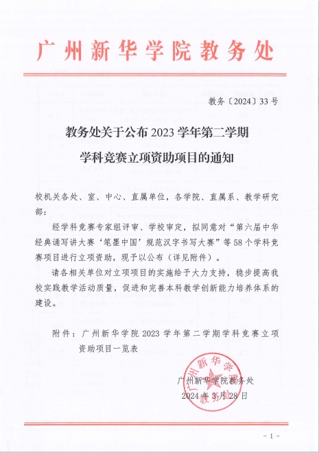 系一项学科竞赛项目获2023学年第二学期学科竞赛立项资助