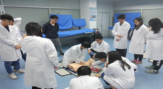 医院老师带领大家进行CPR技术的练习,系统地讲解了心肺复苏技术的操作及相应的生理知识,同学们清楚地认识到掌握CPR这项挽救生命的技术的重要性,并认真地练习CPR操作。