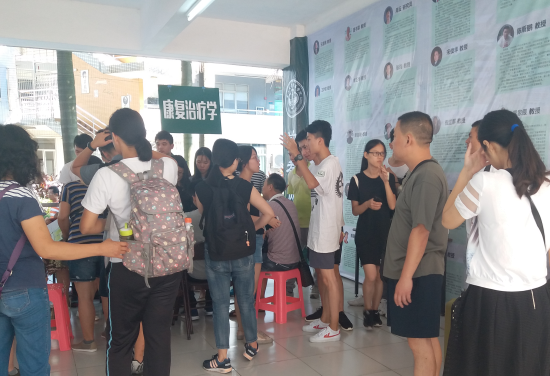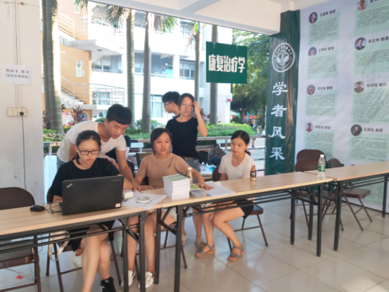 大家分工合作,一部分负责在校园门口引导新生,一部分负责在架空层接待新生,一部分引导新生缴纳学费,办理水卡,为了让新生与家长能花最少的时间完成最多的事。