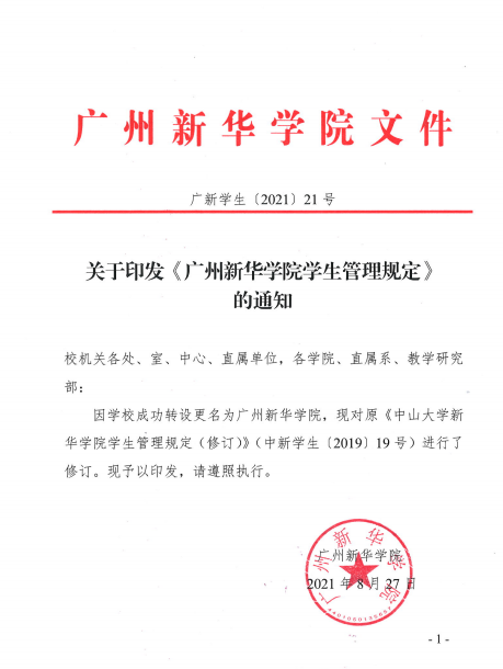 《3044永利学生管理规定》的通知(广新学生〔2021〕21号)