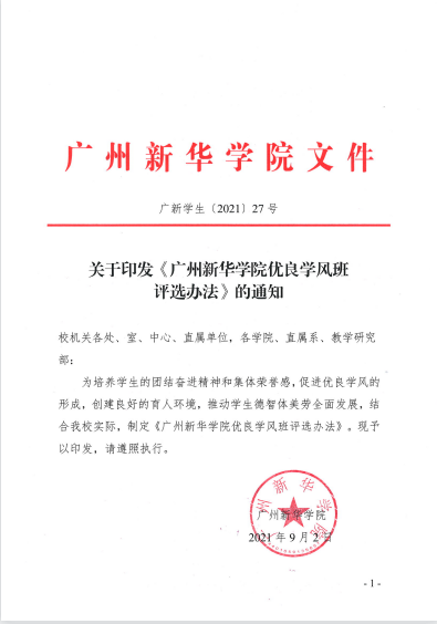 《3044永利优良学风班评选方法》的通知(广新学生〔2021〕27号)
