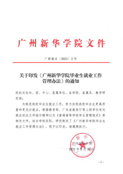 《3044永利毕业生就业工作管理办法》的通知(广新就业〔2021〕2号)