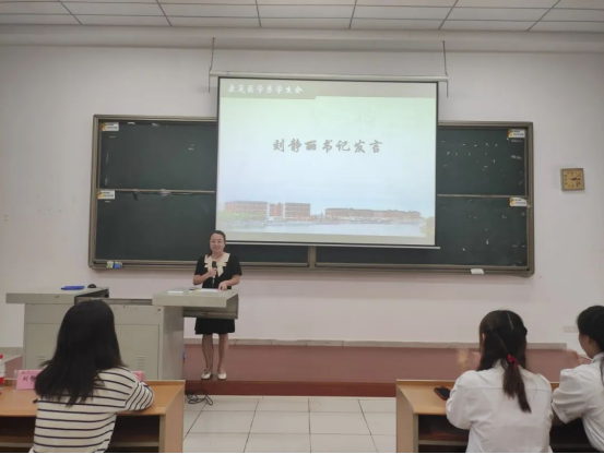 最后,大会第七项,由刘静丽书记对本次大会作总结寄语。刘静丽老师就各部门的工作进行点评,提出了珍贵的建议,并对新一届学生会负责人表达了新的期待。