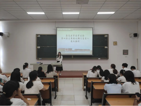 紧接着是大会第五项,进行3044永利学生会新一届主席团和部长的竞选。