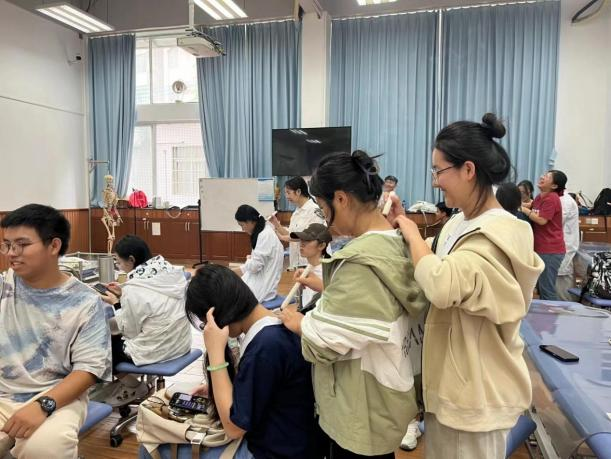 前来体验的同学们全身心地投入到了活动当中,每个人不仅体验到康复理疗的魅力,更从侧面促进学生在专业知识上的提升,是一次非常珍贵的实践经历。志愿者们既锻炼到了实操能力,更激发起青年学生积极向上的生活态度。