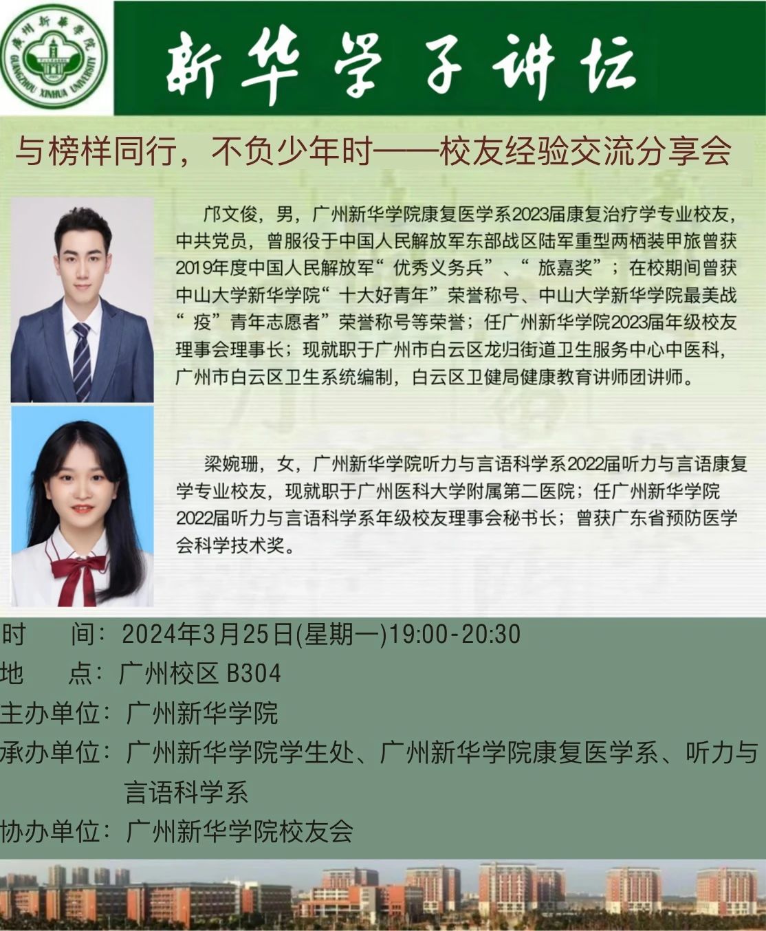 【学子讲坛预告】与榜样同行,不负少年时——校友经验交流分享会
