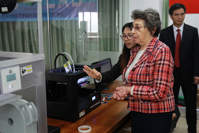 纽约大学Steindhardt学院物理治疗系主任、新华学院客座教授Wen Ling博士与康复系同学交谈学习情况